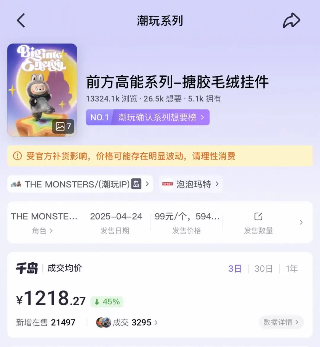 受到官方补货影响,Labubu在二手市场的交易价格应声下跌。